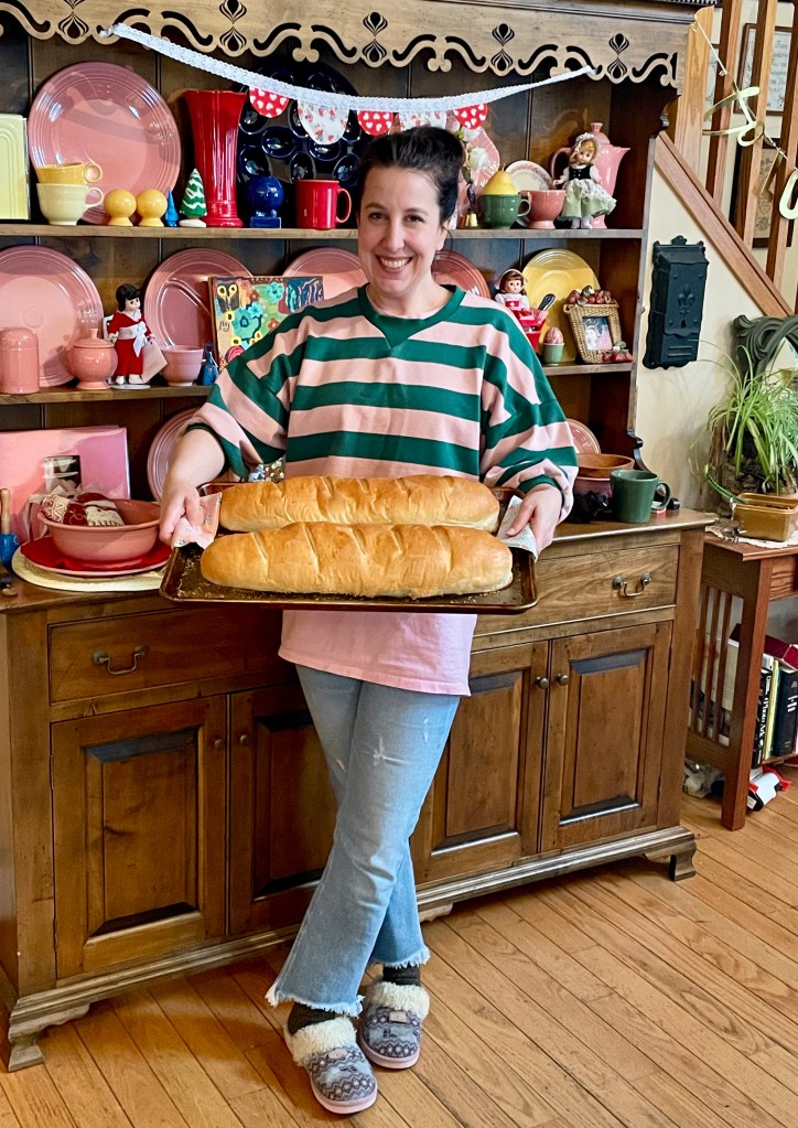 Those are some big loaves of bread! Looks so yummy. Nothing like nice hot bread straight out of the oven slathered with butter!