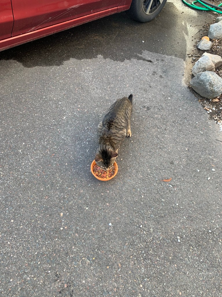 I can’t believe it’s already almost a week since Grace and I tried to lure a stray cat to us with a bowl of dry cat food. To our surprise and wonder, it actually came. It was wearing a flea collar and was nothing but skin and bones. It meowed but it’s voice wasn’t a thing of beauty. It said, “Hello, I am a starving cat. I’ve been watching you for a month. I already met your other cats. The black one chased me away but I had a feeling you would welcome me inside.”