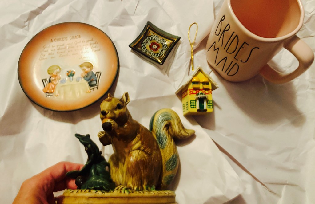 I got up and dressed and got a box ready to mail to my dear friend, which I always love to do, pack up a happy box and traipse to the post office with it and see how expensive it will be this time (12 dollars). I invited Sarah to come along and off we went. We tried to listen to Dateline the podcast on the way but she said it was making her sad so we switched to her music choice; Taylor Swift. We stopped for gas and went inside for drinks. She got one of those egg candies that have a toy inside and guess what it was a beaver so she gave it to me. It’s so cute! I got a cheesestick and a low calorie gatorade. We continued on down the road…..