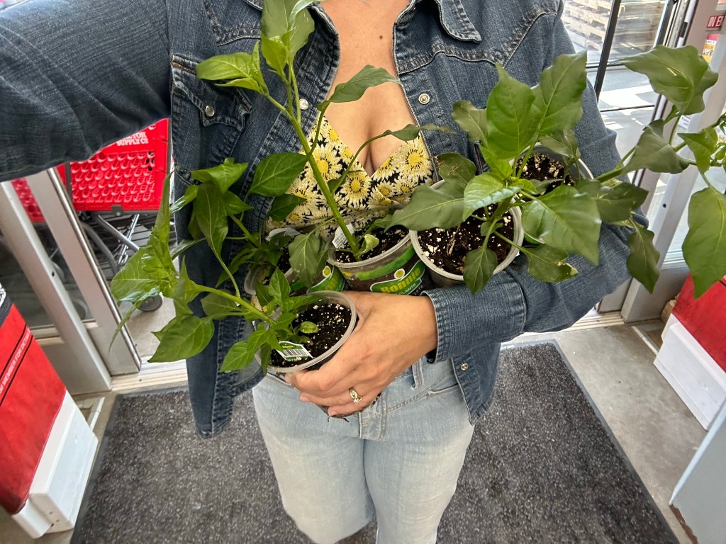 Dave has been gardening with me this year, he wants to make hot sauce so whenever I see hot pepper plants I buy them. These are from Tractor Supply and are jalapeño and habanero plants.