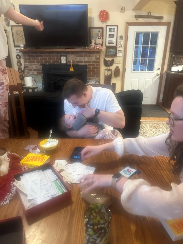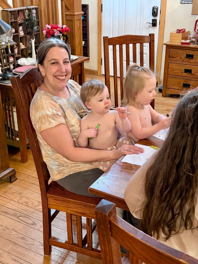 David and Caleb (before Caleb’s haircut)Sarah right before she got on the couch with me. We read our books and then napped for hours.Seth and Caleb (after)Rich and I went to the mall on Saturday morning.Sarah and I went to the mall Saturday evening (she felt left out). 😂She got these pretzel bites covered in Nutella; she could only eat a couple so took them home to share.Family couch time, watching wrestling on tv.CalebSunday afternoon with the babies on my lap. Precious We played a game with Jacob, Brittnee, and Sarah and this was when it ended; I love the way Sarah is standing on her chair, Jacob is enjoying his bay, and Brittnee immediately started picking up.Caleb and Jacob (Jacob’s wearing shoes!) the height difference really isn’t this dramatic.My latest passion is replacing buttons on my new clothes with older, unique ones. I did these yesterday…took off plastic white ones and added antique square glass ones.This was last week: I added little glass magenta buttons.