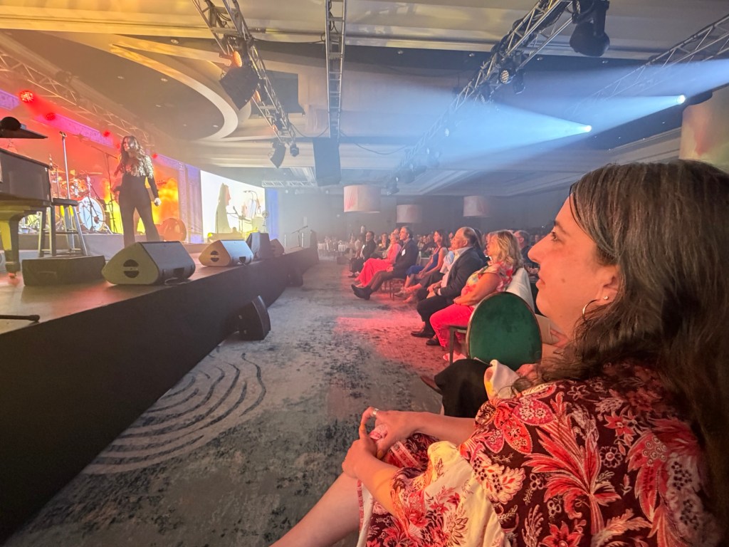 …..was on the 31st of March. We were together on Amelia Island for a work conference and the last day just so happened to fall on his birthday. There is always a surprise live musical performance on that last night, which meant that Rich was serendipitously gifted with an amazing concert by Idina Menzel. She’s currently most famous in our world (as parents and now grandparents) as “that lady who sang Let it Go in the movie Frozen.” But it turns out she’s quite accomplished, I had no idea really, so I’m now a huge fan of hers just like my daughter in law Sierra who texted us “An angel walks among you” when she found out what was happening……