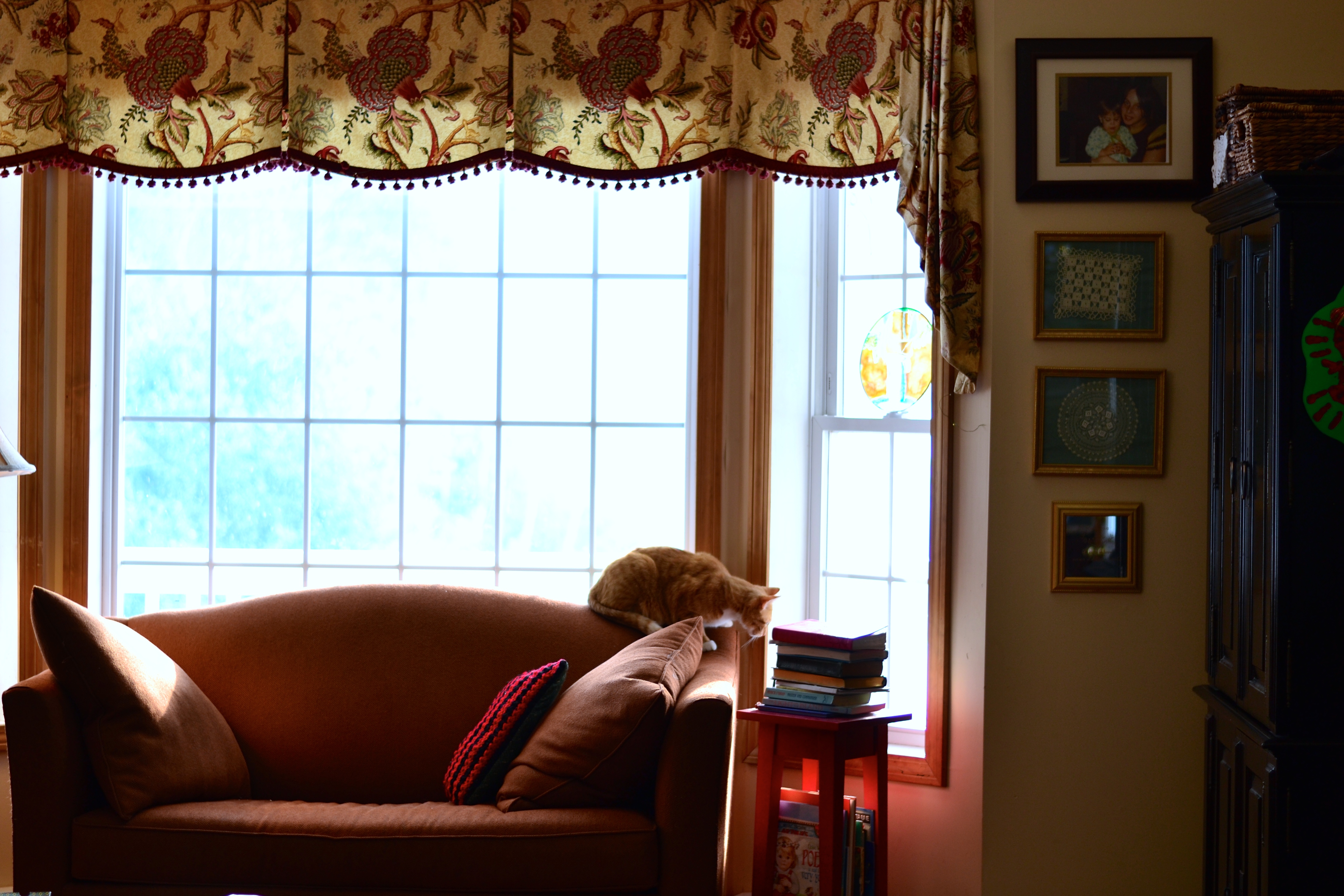 Christmas was nice. Certainly it is more work than magic for the parents, but it is a rewarding work. All the shopping, lists, and making sure everything gets done by December 24 can be rather tiresome. (At least there is a deadline.) I love the photo of the stockings; starting with Rich’s, then the children from oldest to youngest, with mine at the end. The tree lights reflecting in the stove look like there is a fire is going. A sweet friend who owns a greenhouse gave us the gorgeous poinsettias, which I keep faithfully watering. Seth made the red handprint green construction paper wreath and the paper chain.
