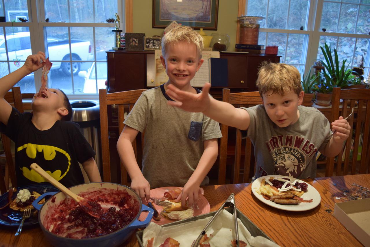 In the afternoon my sister and her family came. We had planned on a brunch but then found out that Jason had to work half day and Rich had to coach a wrestling practice. But we still had breakfast food….which we ate at lunch time.