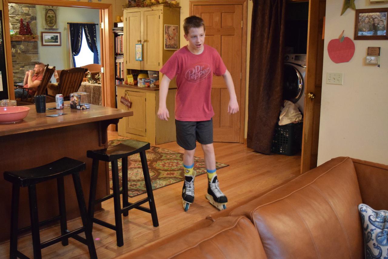 In large family gatherings you just never know what will happen. David decided it was a good time to roller blade throughout the house.