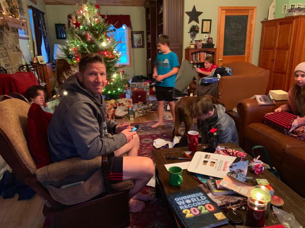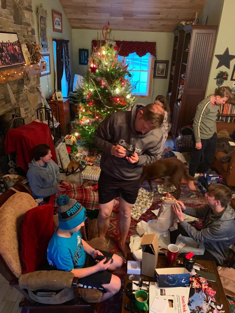 David was thrilled to get one more big box from Santa and he felt very special like maybe…….he was the favorite. (It was clothes from Dicks clothing and Sporting goods; a long sleeved blue shirt that he said he had just looked at the last time he was there, a pair of skinny joggers, and a Nike jacket)