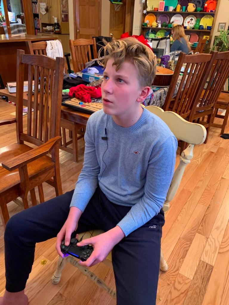 Seth in a new Panthers shirt (his favorite NFL team), I asked him about that and he said that years ago his first favorite team was the Patriots “until I found out that Tom Brady was a cheater.”
