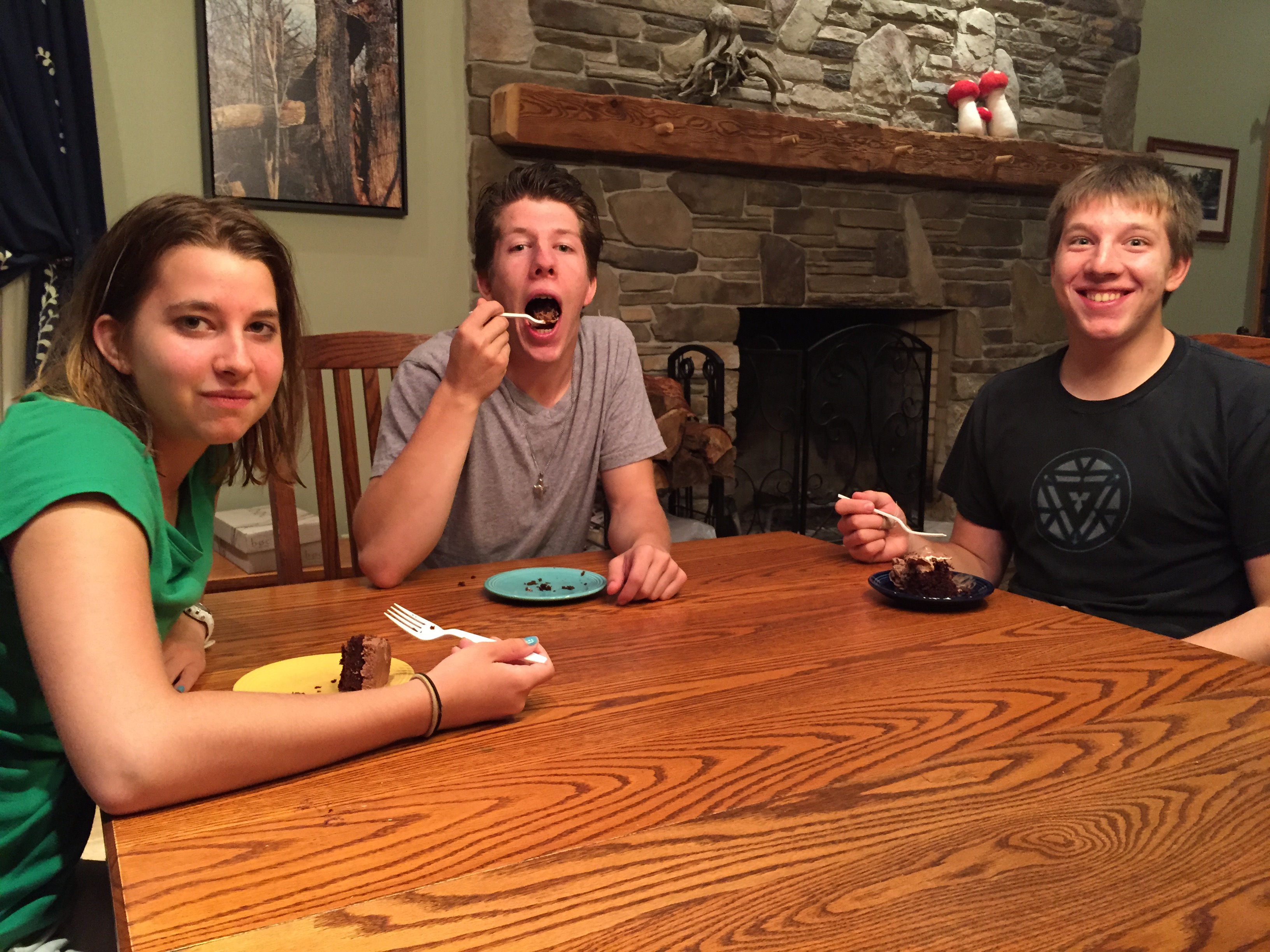 I made Caleb’s birthday cake myself…David in the red shirt took one bite of it and yelled “YES!” As I jumped in my seat next to him he continued, “This cake is moist! I love it when the cake is moist.” LOL!!