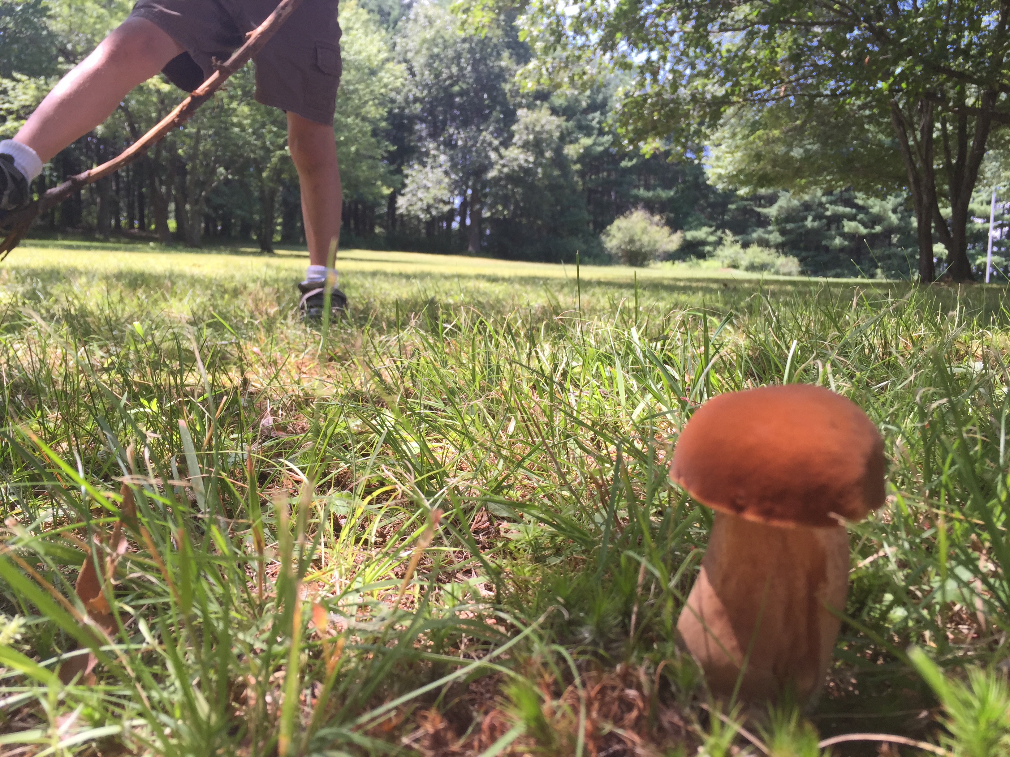 He was hitting mushrooms like they were golf balls. Using a stick as a club.