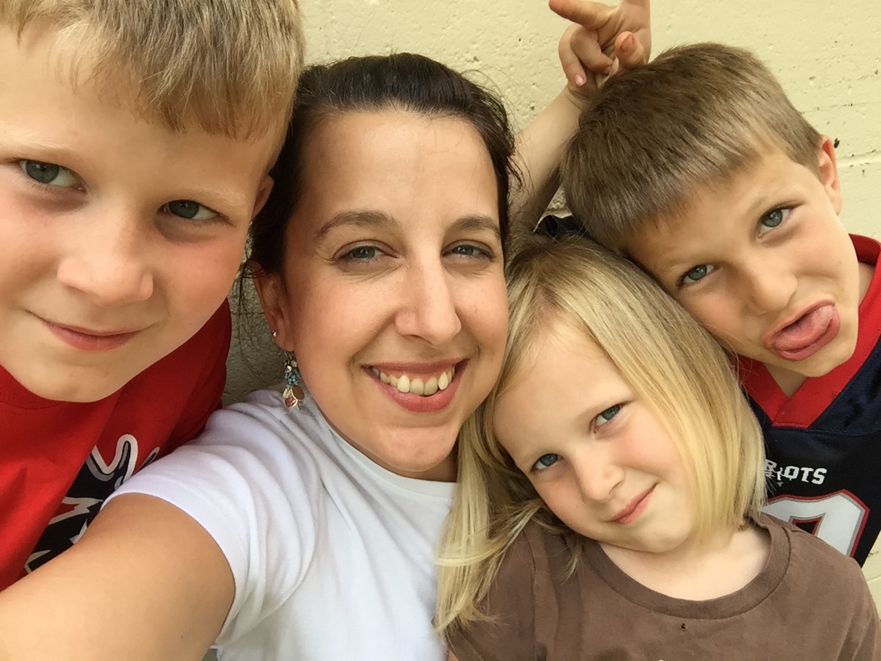 I had to run over to get in a picture, too, (along with goofy wrestling boys in the background). Gosh, I look tired almost like I had spent half the day saving my flock of hens from a fox. (true story)