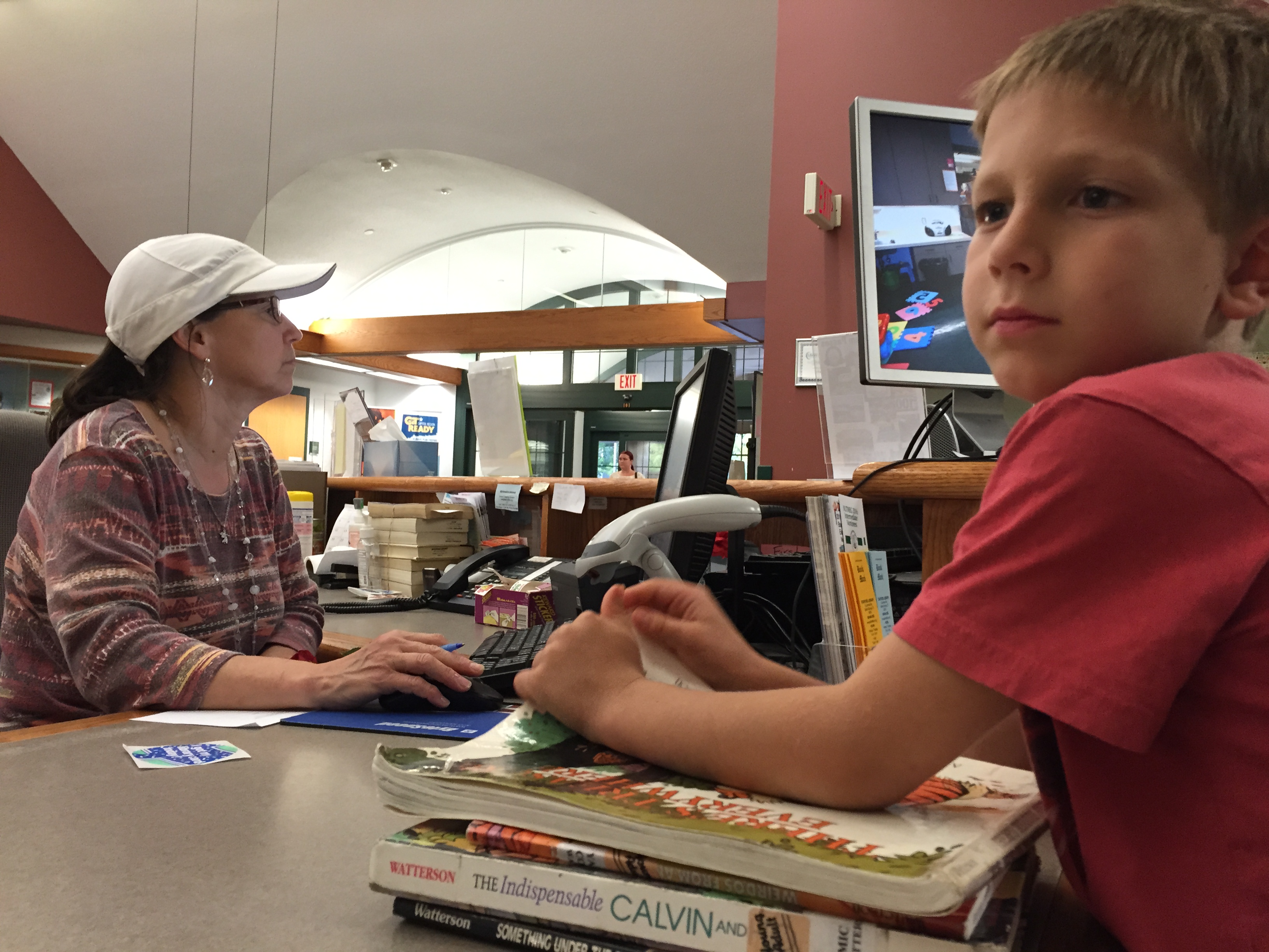 We went to the library last night for a magic show and then Seth got his first library card! I die.