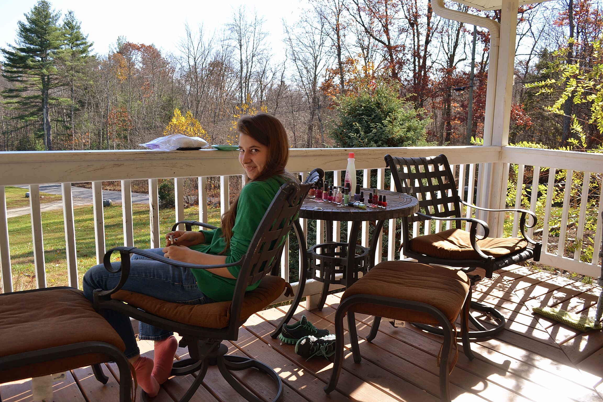 at our table, eating a cookie; happy, tired, and relieved!