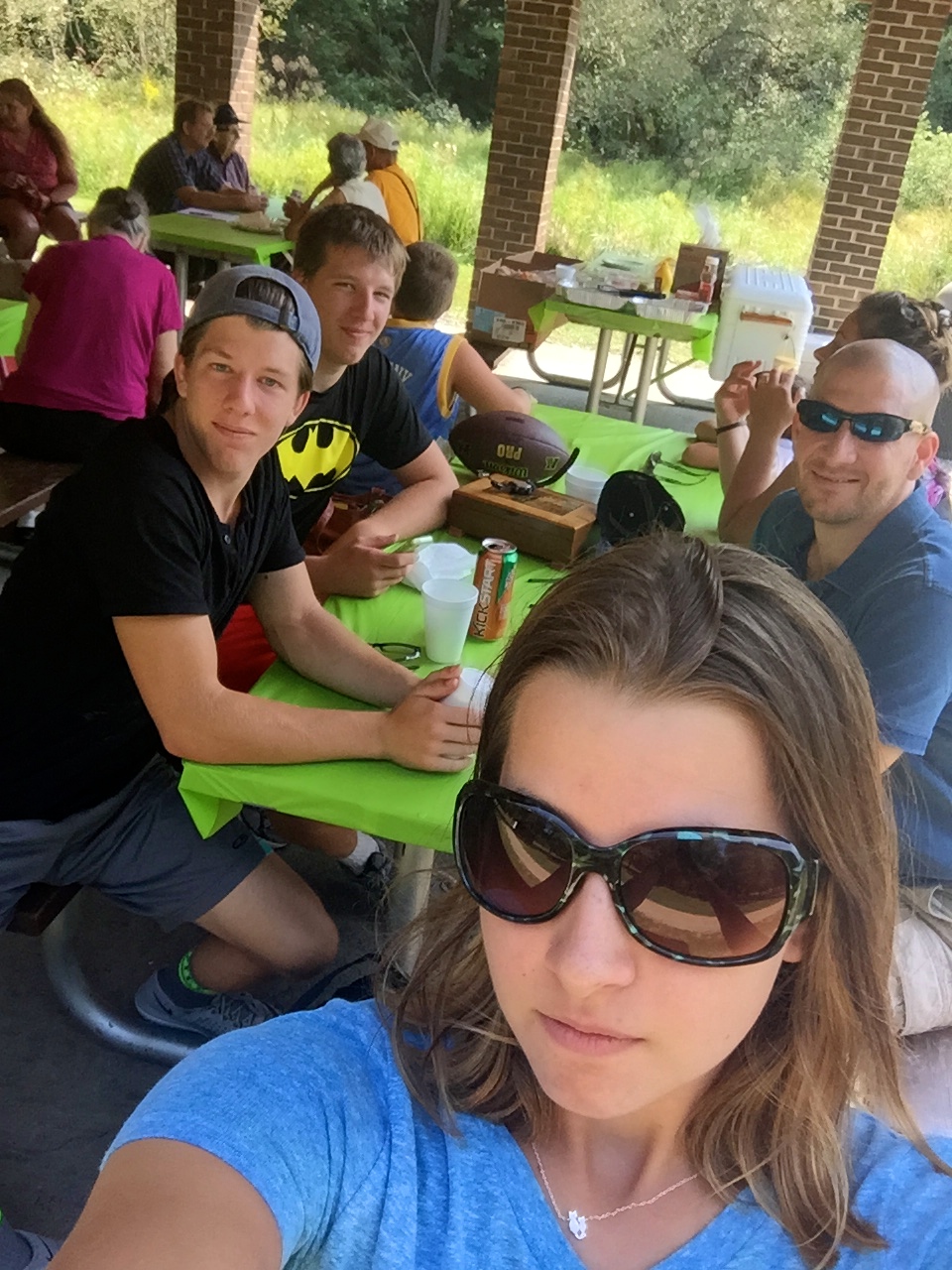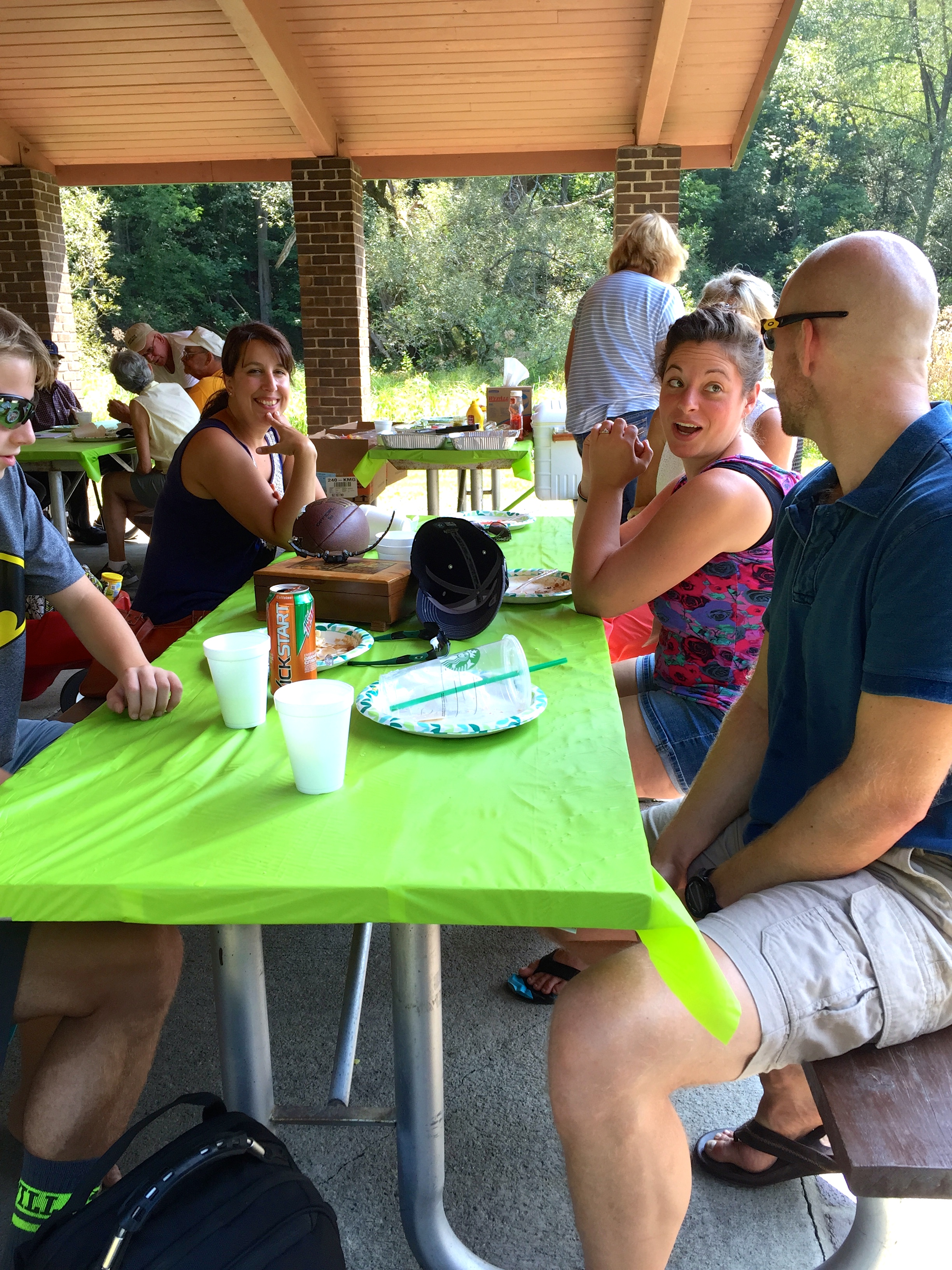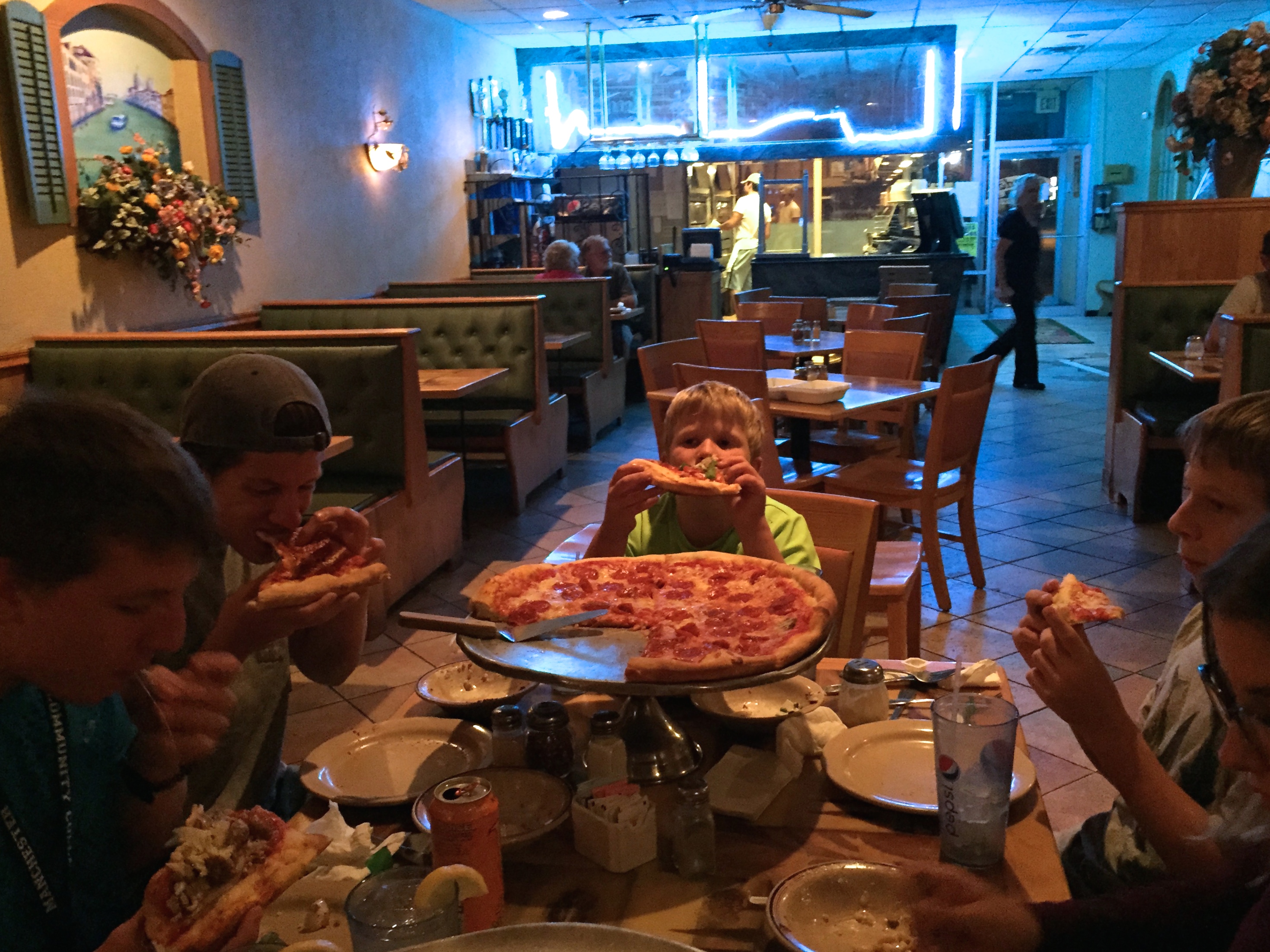 It wasn’t hard to eat it all in one go because we had a house FULL. In this picture there are 10 teenagers, 2 big dogs, and a small gray cat. There are two kids not in the picture, plus Rich and I.