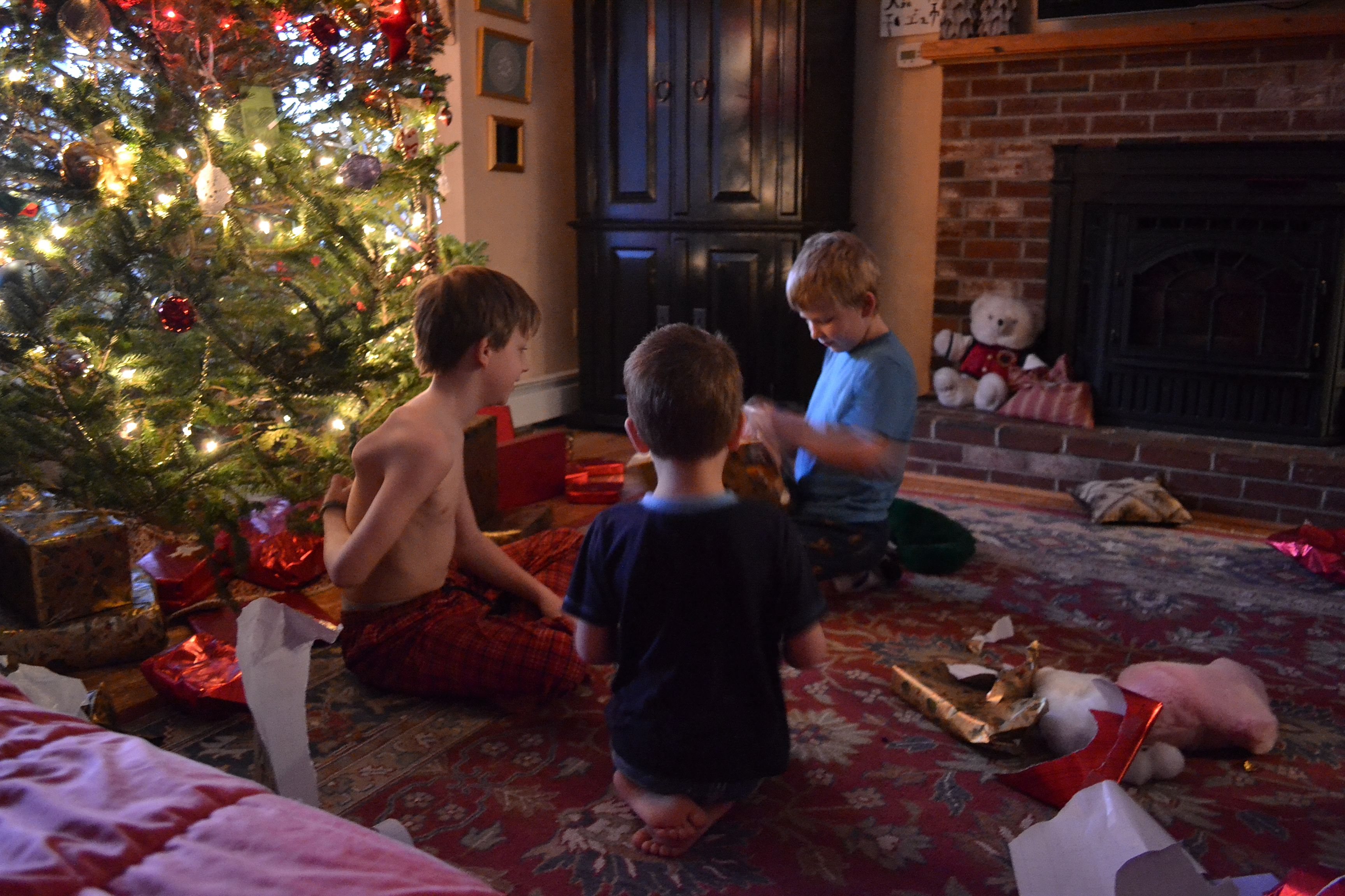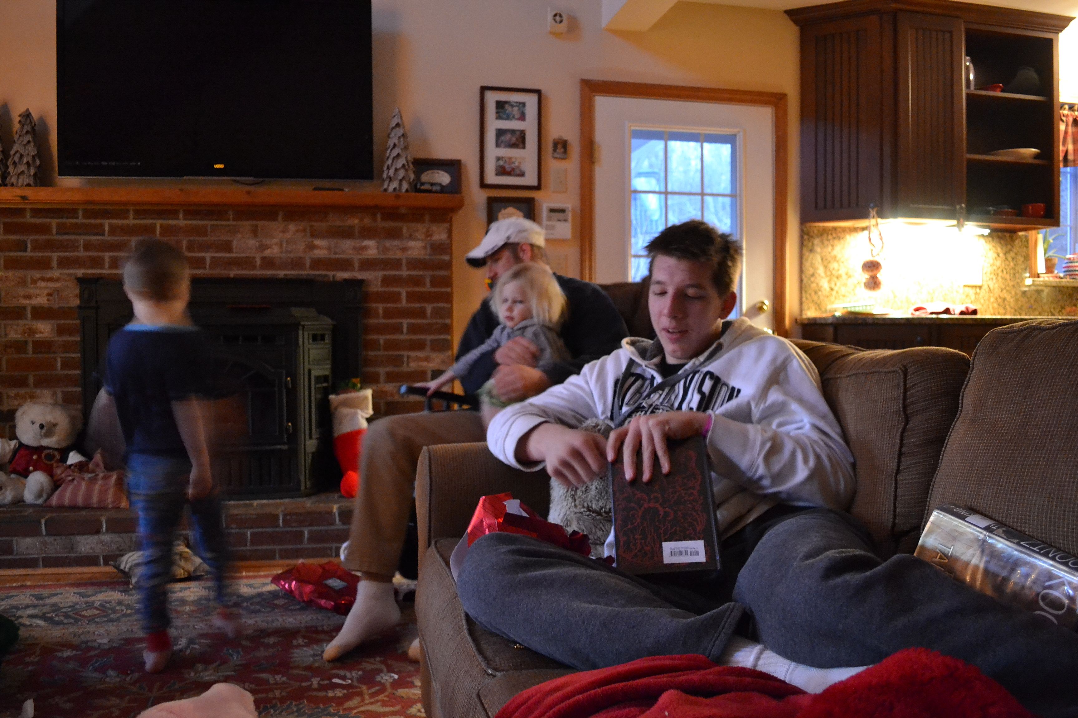 Rich got up out of bed on Christmas morning at 5:30, I asked him why, “I have to go do your stocking.” I gave him enough time and then got up to find that the three littlest ones were also awake. Grace soon followed and tucked herself into her favorite corner of the couch. We sat and waited, the kids tested their limits in exploring the gifts as Rich and I drank coffee with our feet up on the coffee table. Jacob and Ethan woke up next. Our David is the late sleeper and Rich made his yearly torturous joke about how because it’s Christmas we weren’t going to wake him up, “let the poor boy sleep in.” He has been known to sleep all the way until lunchtime so it was a relief when Seth went down to wake him up at 6:30.