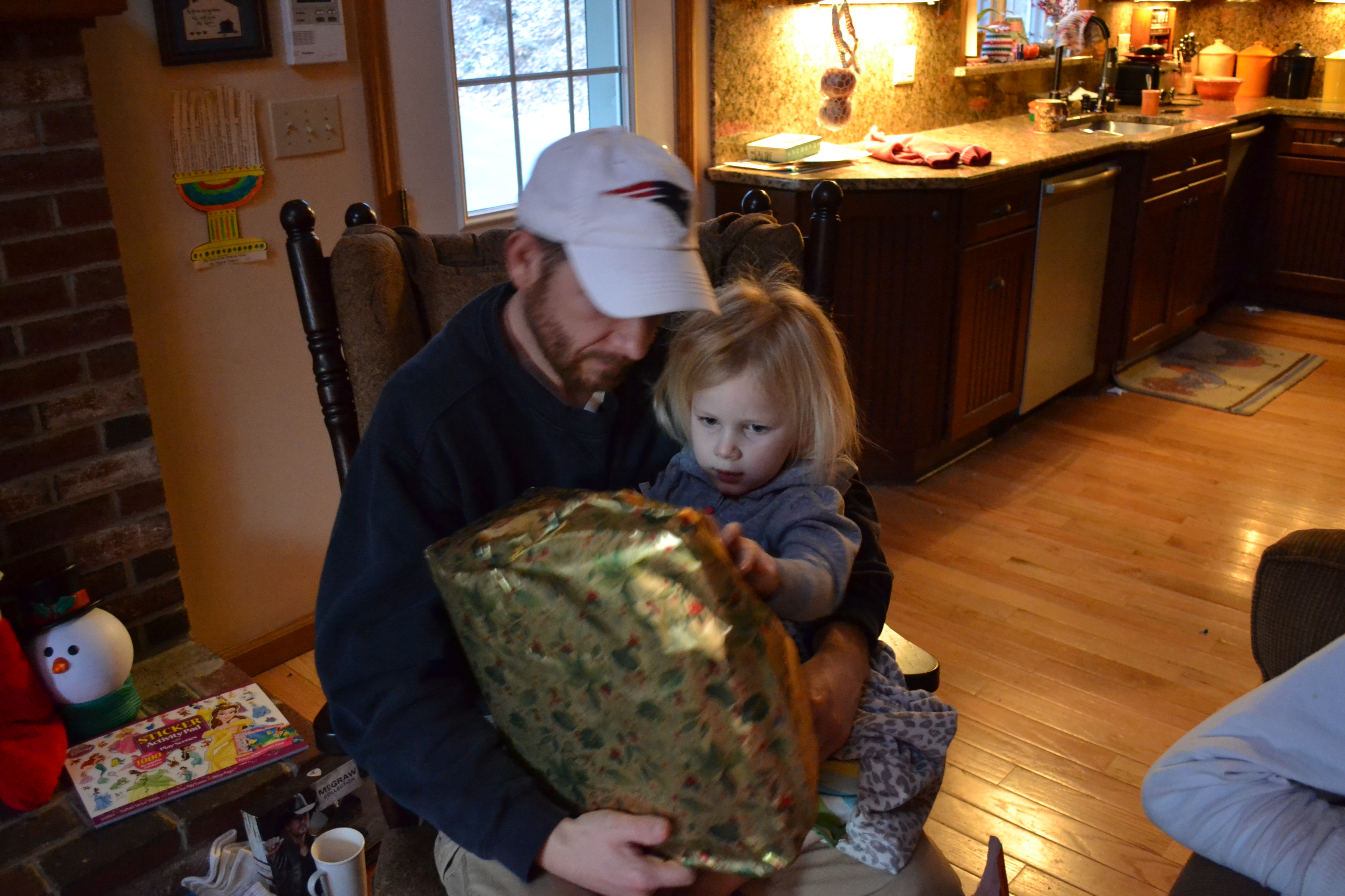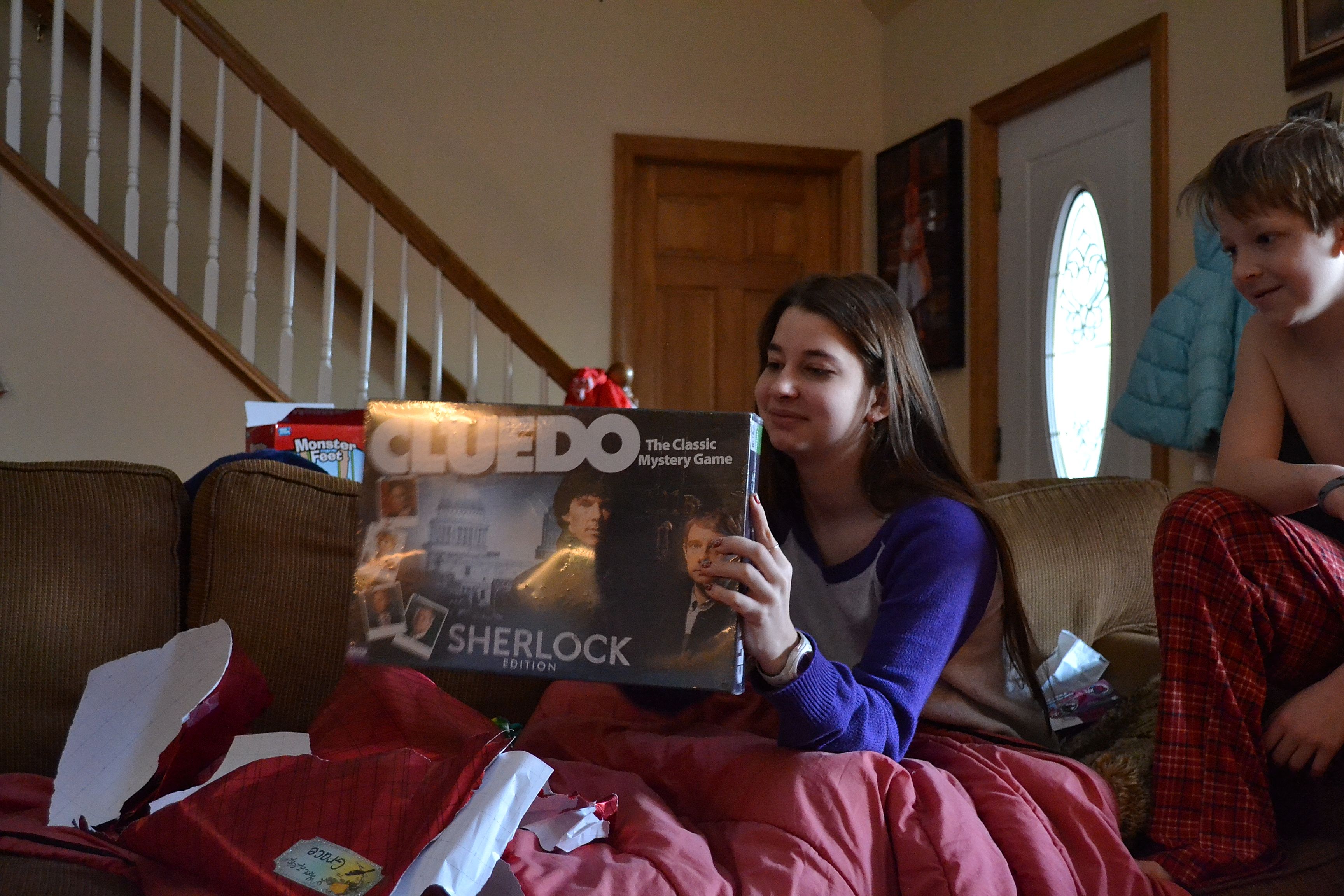 Sarah is behind the box. Happiness is being small enough to get lost behind your gifts.