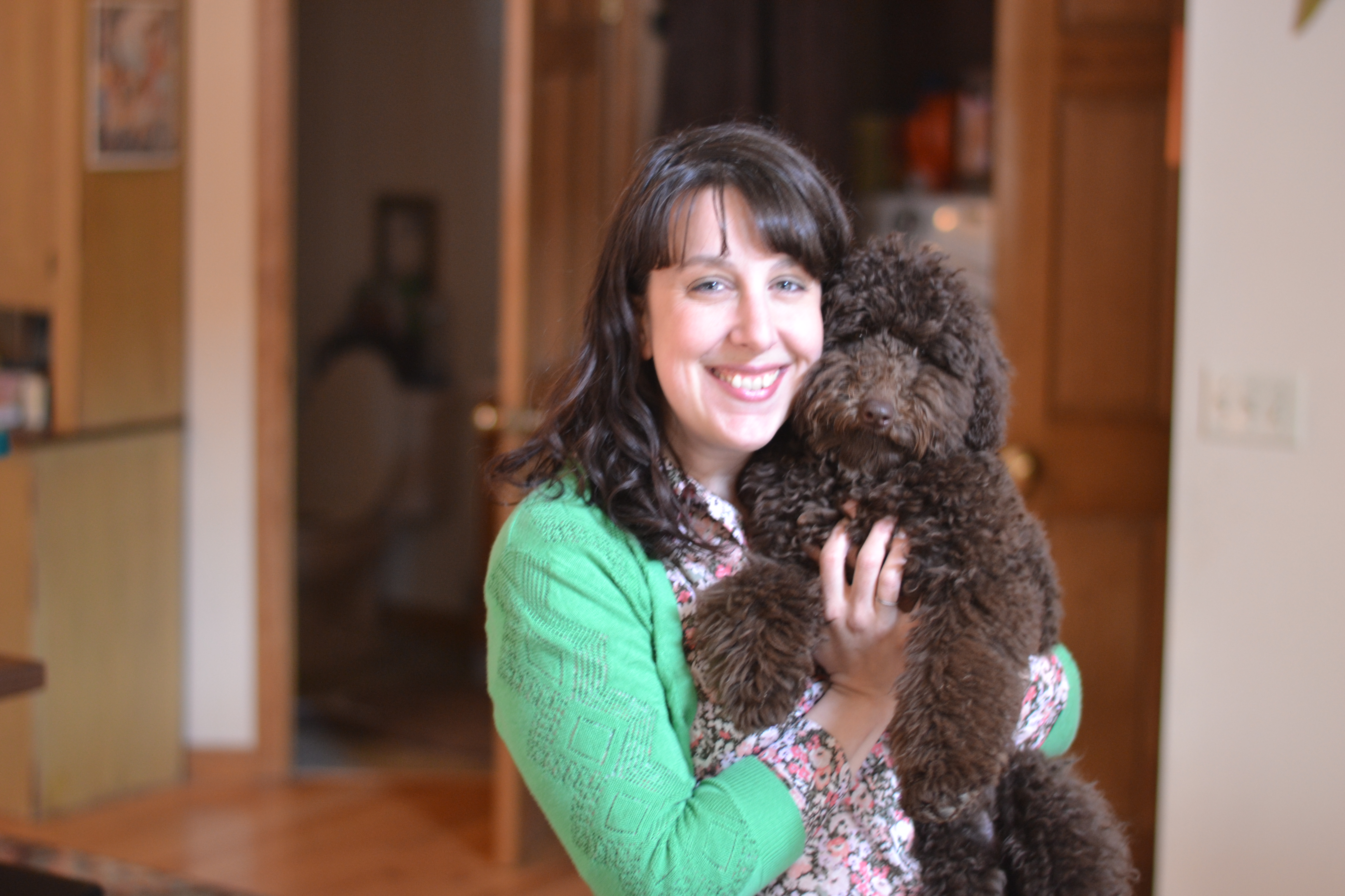 We had my sister’s dog-baby all weekend, too. His name is Lloyd and he is a labradoodle. Isn’t he adorable? Rich called him Rug and told me that Rug looked just like me what with the brown curls. He was a lot of fun to have in the house with us, such a cute puppy. David was the one in charge of him, while Uncle Jason and Aunt Amanda were away for Easter. He is back home now and Seth asked me if we could please get a rug.