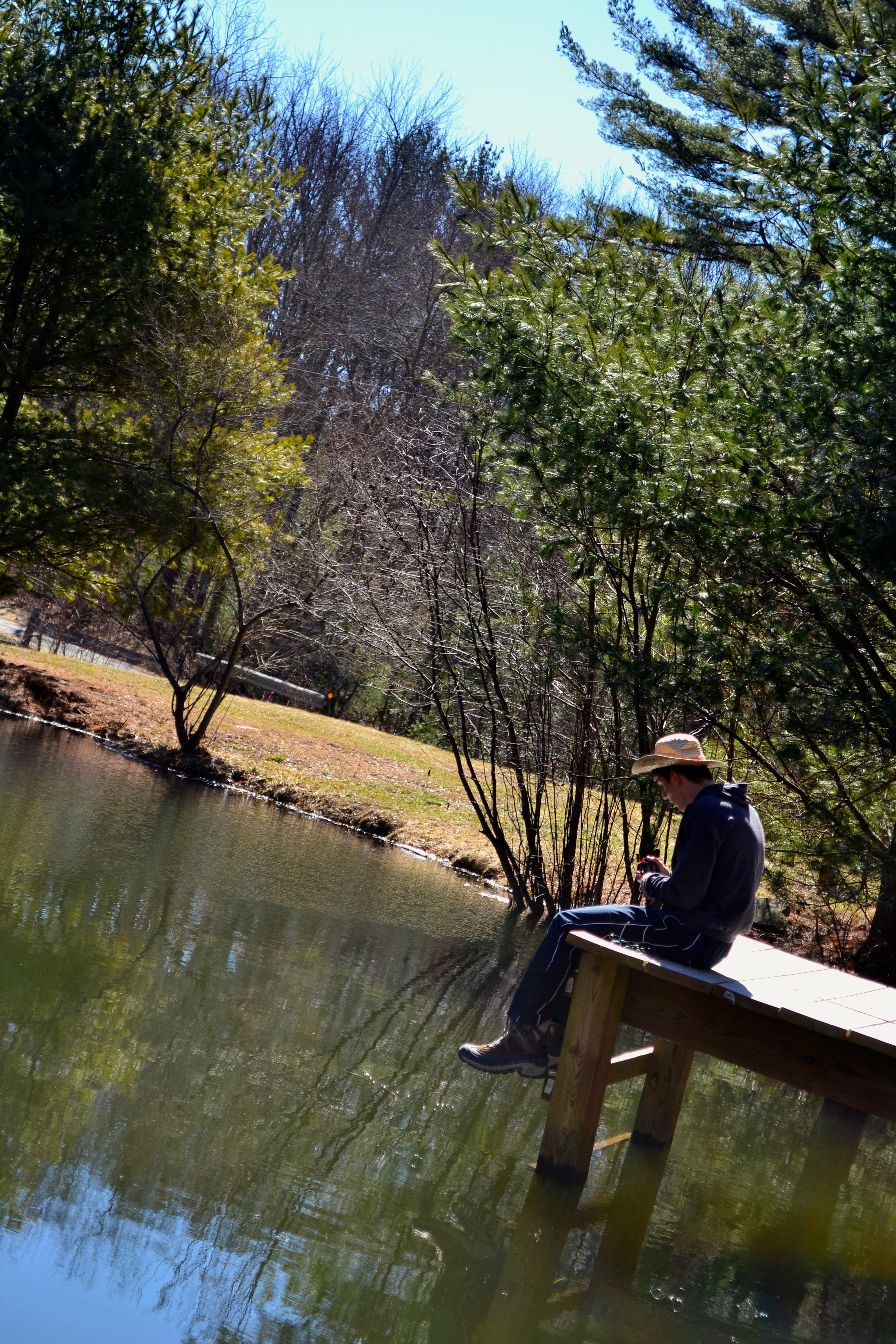 After basketball we dared him to jump in the pond. He was happy to be dared. He prides himself by being the first one in the pond every spring.