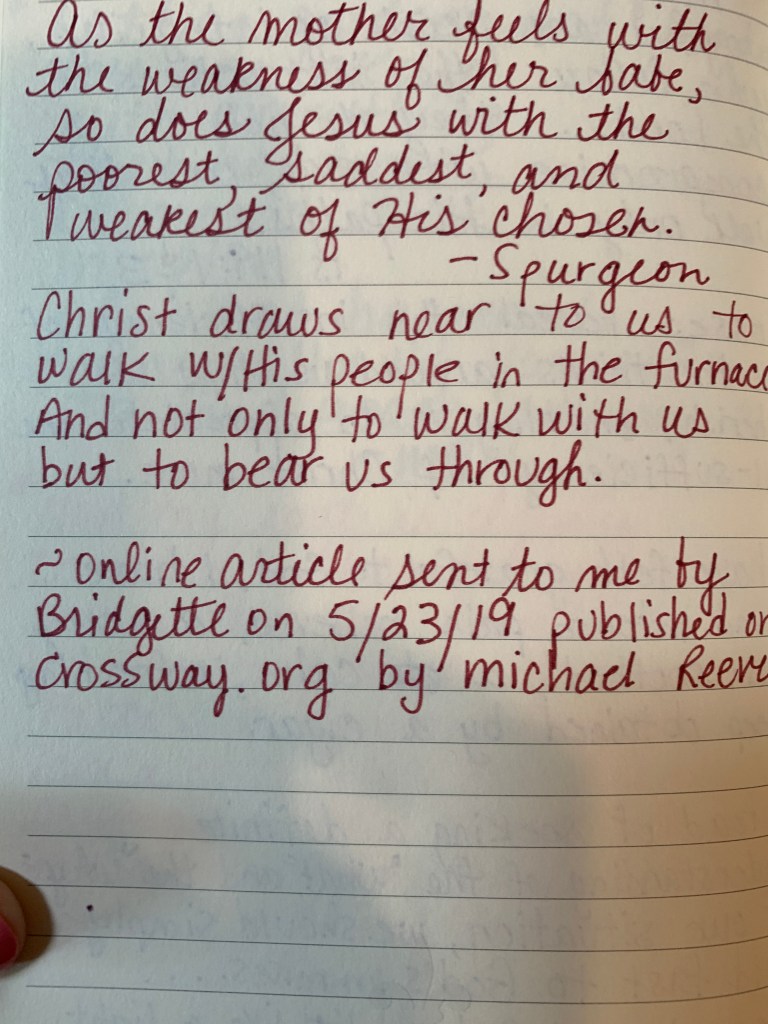 I found a new podcast that I listen to as I walk and it never ceases to soften my heart. The speaker simply reads excerpts from books or essays from various spiritual writers. His voice is soothing but –be aware–the children will laugh. I was listening to it when I picked up David from track practice and he dropped his head back on the seat pretending to be put sound asleep by the voice reading to us.